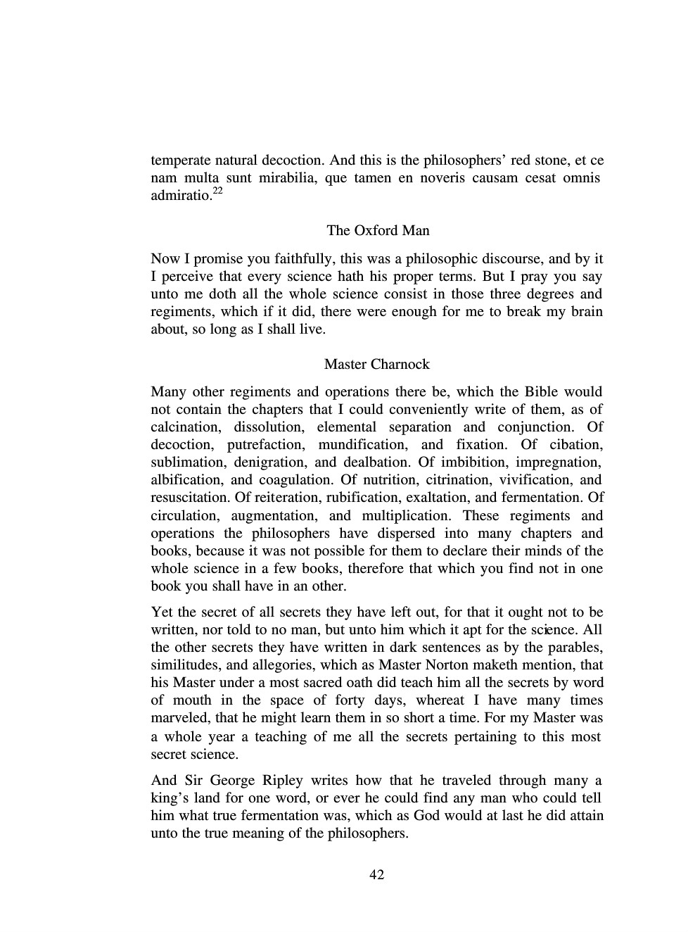 “the Quintessence and the hidden things of our Stone is nothing else than our viscous, celestial and glorious Soul drawn by our magistery out of its mine, which engenders itself, and that it is not possible for us to make that water by Art, but Nature alone begets it, and that water is the most sharp Vinegar, which makes Gold to be a pure spirit”