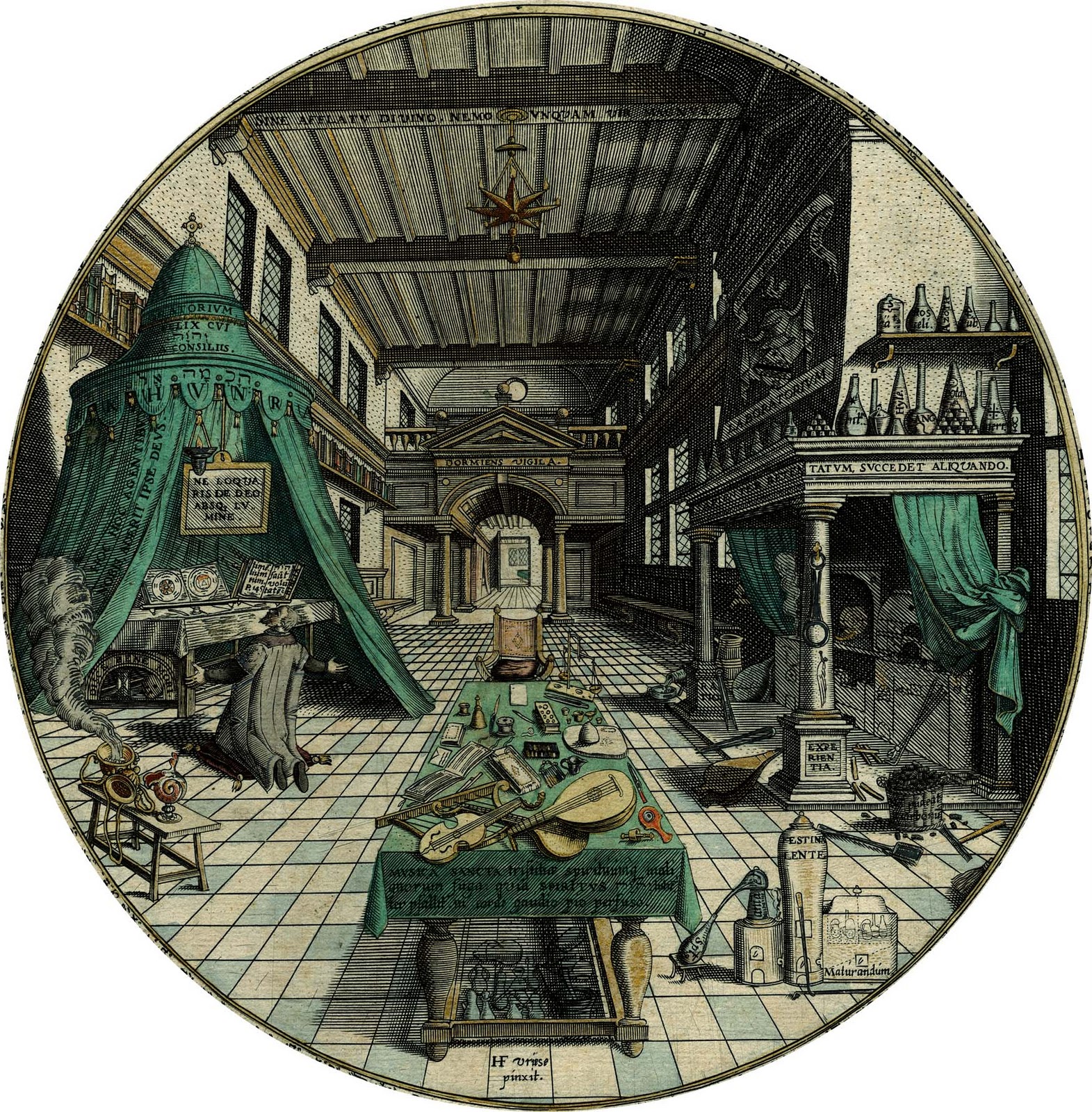 Henry Khunrath Lips. Lover of Theosophy, and Doctor of Medicine, by the grace of God, inventor. Paulus vonder doort [Paulus vander Doort], Antwerp. scratched Hamburg. In the year of Christ's birth, 1595. In the month of April.