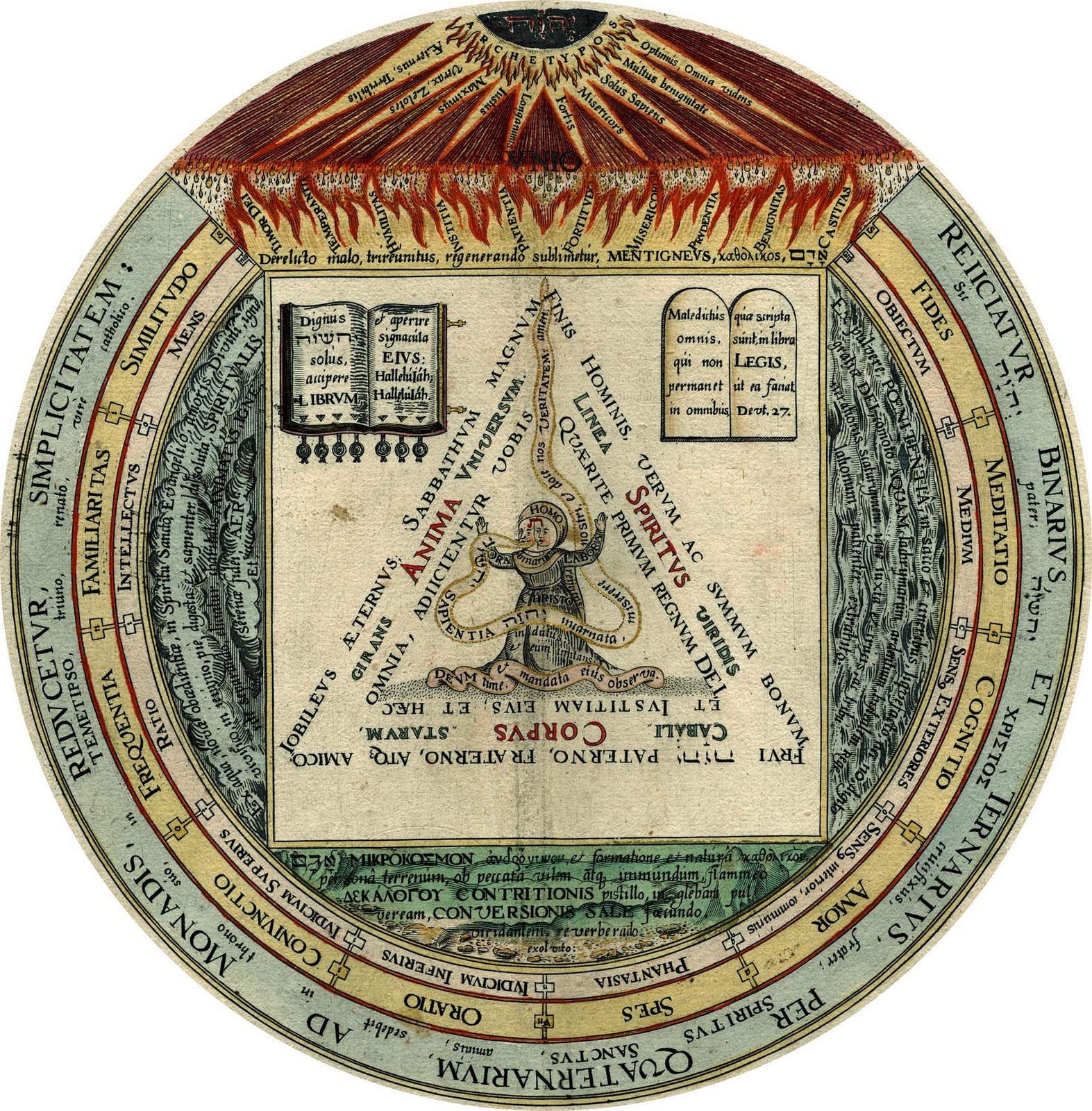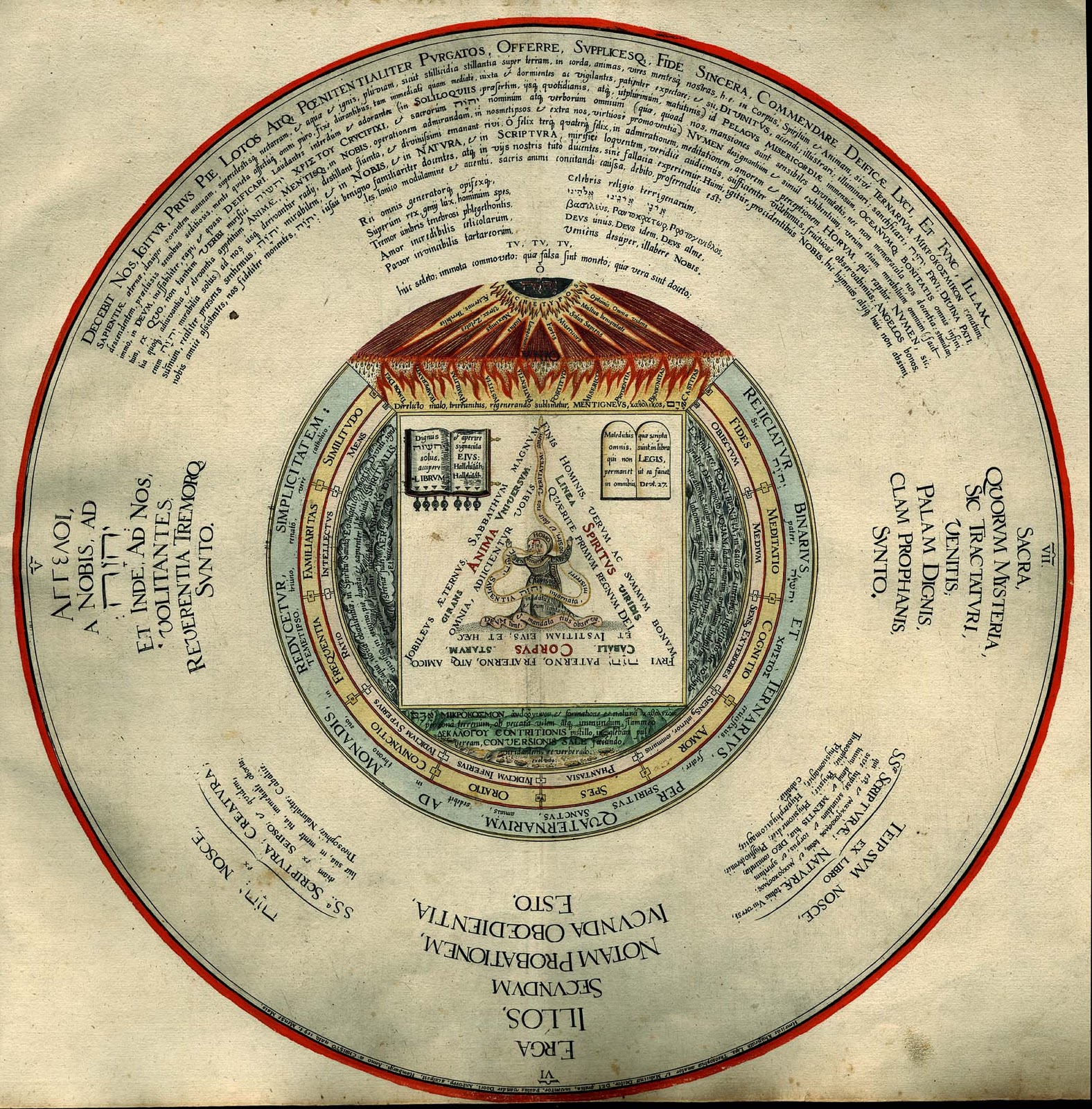 For there is an urim urim, through which, being present and thummim, Yhvh, thrice greatest of the greatest and most abstruse, cabalically gives answers to Theosophus, speaks, and sends out his voice. Indeed, the immense amphitheater of God's benevolence, wisdom, and omnipotence, and a great testimony of his kindness towards us! And the abyss of the miracles and secrets of God, in Nature, most profound, really expounding the books of the most holy Scripture and Nature. From the precise contemplation of which, as if through a supine and deep step, in Yhvh recognition; Prone and blind, in a true and perfect knowledge of Nature and of ourselves, we ascended theosophically, and naturally and sensibly betrayed. A typical, yet sufficient and sensible, representation of the most profound mysteries of the person and office of Jesus Christ crucified, and of the sacraments and articles of the Christian faith in the order of all, as many as they are. As a friend of eternal wisdom, faithfully trained in physicochemistry, can demonstrate abundantly and quite clearly.