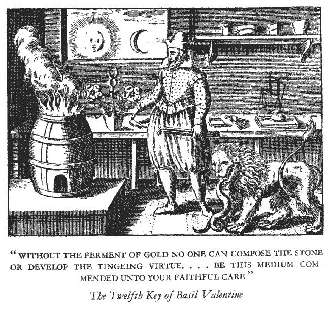Basil Valentine, in his Triumphal Chariot of Antimony, puts it thus: "Therefore we admonish all and everyone, that all venomous impurity is totally to be taken away from Antimony, before it can either be called a medicine truly or administered with safety—in other words that all arrogant self-will, sensuality, folly, avarice and variability of purpose, all but the one voluntary faith to rectify and perfect, be removed from the mind of him who is to enter into the radical dissolution of Life. For the weapons of this warfare are not carnal, as the Apostle teaches, but mighty through God to the pulling down of strongholds; casting down imaginations, and every high thing that exalteth itself against: the Knowledge of God, and bringeth into captivity every thought to the obedience of Christ. And for this cause the good must be separated from the evil, the fixed from the unfixed, the medicine from the venom, with all diligence, if we hope, by the use of Antimony to obtain true honour and true utility; but Fire only can effect that, and Vulcan is the sole and only master of all these. Whatsoever the Vulcan of the Greater Orb leaves crude and perfects not, that in the Lesser World must be amended by a certain other Vulcan, ripening the immature, and cocting the crude by heat, and separating the pure from the impure. That this is possible no man will doubt; for daily experience teaches the same, and it is very apparent in the corporeal aspect of colours which proceed from the Fire. For by Separation and Fire, which perfects its fixation, venomosity is taken away, and a change is made of the evil into the good; therefore Fire is the Separation of Venom from Medicine and of good from evil; which, however, is a thing that none can truly and fundamentally own or demonstrate, unless he who hath firmly contracted friendship with Vulcan, and instituted the Fiery Bath of Love, wherein the Bride is cleansed of all impurity and enabled to lie in the bridal bed with her chosen Spouse."