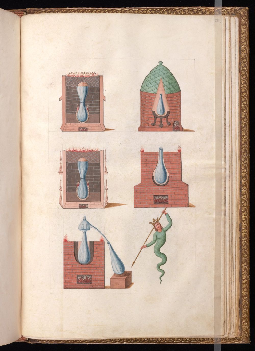 So all the same dissolve, distill, coagulate, mortify and sublimate higher cynabrium hominis luna fixing sol, calcine this sol hominis purissimus luna, sol ignis aereum elementum metallorum; it returns to its first principle and dissolves in its marvelous corrosive water higher mercurius hominis solis.
