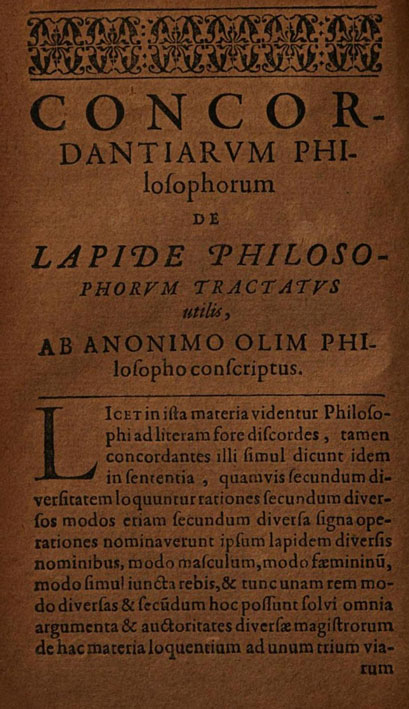Now therefore we must, not without reason, approach the concordance of the philosophers. Conclusively, then, it seems we should say that all the philosophers and their authorities agree in this, that the Philosophers’ Stone is always Mercury; and this is plainly evident from the authorities already set forth, and appears most clearly to those who read their books. They seem, however, to disagree about natural mercury and extracted [mercury], as has been said.