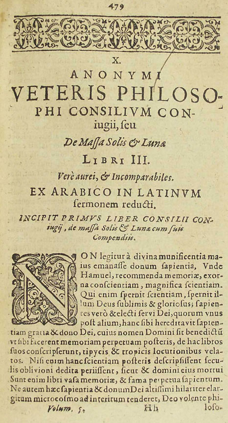 CONSILIUM CONIUGII, SEU DE MASSA SOLIS & LUNA