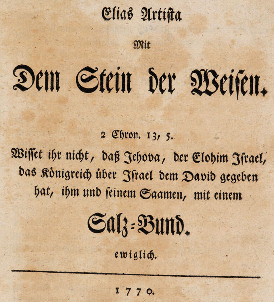 Elias Artista Mit Dem Stein der Weisen. 2 Chron. 13, 5. Wisset ihr nicht, daß Jehova, der Elohim Israel, das Königreich über Israel dem David gegeben hat, ihm und seinem Saamen, mit einem Salz-Bund. ewiglich