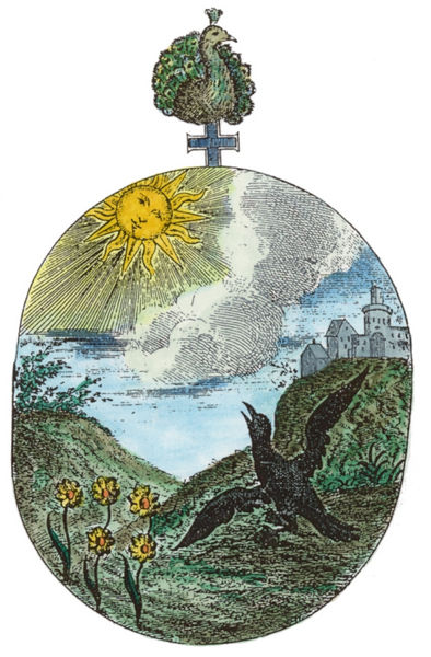 (6) watches the black Raven grow in the putrefaction, (7) is reborn