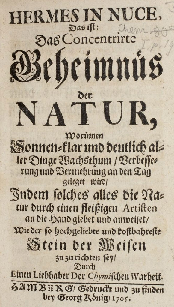 Hermes In Nuce, Das ist: Das Concentrirte Geheimnüs der Natur, Worinnen Sonnen-klar und deutlich aller Dinge Wachsthum, Verbesserung und Vermehrung an den Tag geleget wird