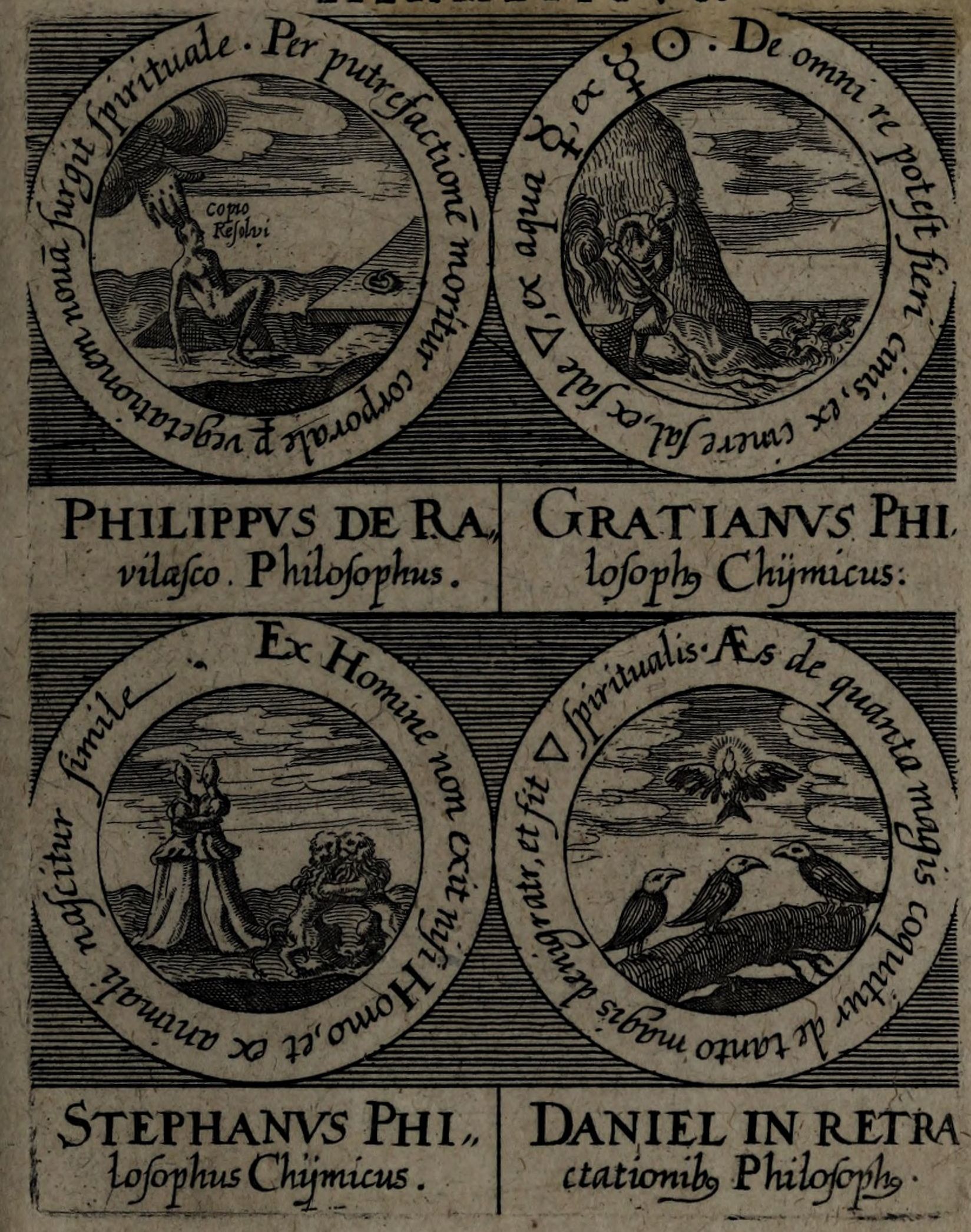 Weil dann gnugiger Leser/ gegenwärtiges vorhero gebendes werck Dyas Chymica Tripartita genandt/ allbereit mit vielen schönen Figuren geziert: Hab ich darauf anlaß genommen/ noch etliche darbey zu fügen. Als nemlich/ diese hundert und sechszig gleichsam Chymische Emblemata, oder Spagyrische Rosen/ welche zuvor in Herrn Joannis Danielis Mylii opere Medico-Chymico senno gebrauchet worden/ samt noch vier andern grossen Figuren. Die Erste mit AΩ gezeichnet. Die drey übrigen aber mit Nu. 1.2.3. Und nach dem die Schrifft/ ermelter hundert und sechzig Chymischer Emblemata/ weilen sie in diese Bücher gestochen/ etwas mühesam zu lesen/ ohn das auch/ den jenigen so der Lateinischen Sprach unkündig/ nichts ovrentig nütze: Als ich hab gnugiger Leser/ dir zu gefallen/ dieselbe transferiren unnd allweg solche descriptones gegen die Figuren über drucken lassen. Wirst dich nun/ so vol dessen/ als auch des vorhero gehende/ zu deinem Nutzen zu gebrauchen wissen/ und inmittelst meine dißmals gutgemeinte Mühe/ und ange wendten fleiß/ zum besten verschätzen. Welches so ich es verspiuren werde/ mir verstat/ und anlaß geben wird/ dir künftigt in mehrem dißfalls bedient zu seyn. Damit GOTT bevolen.