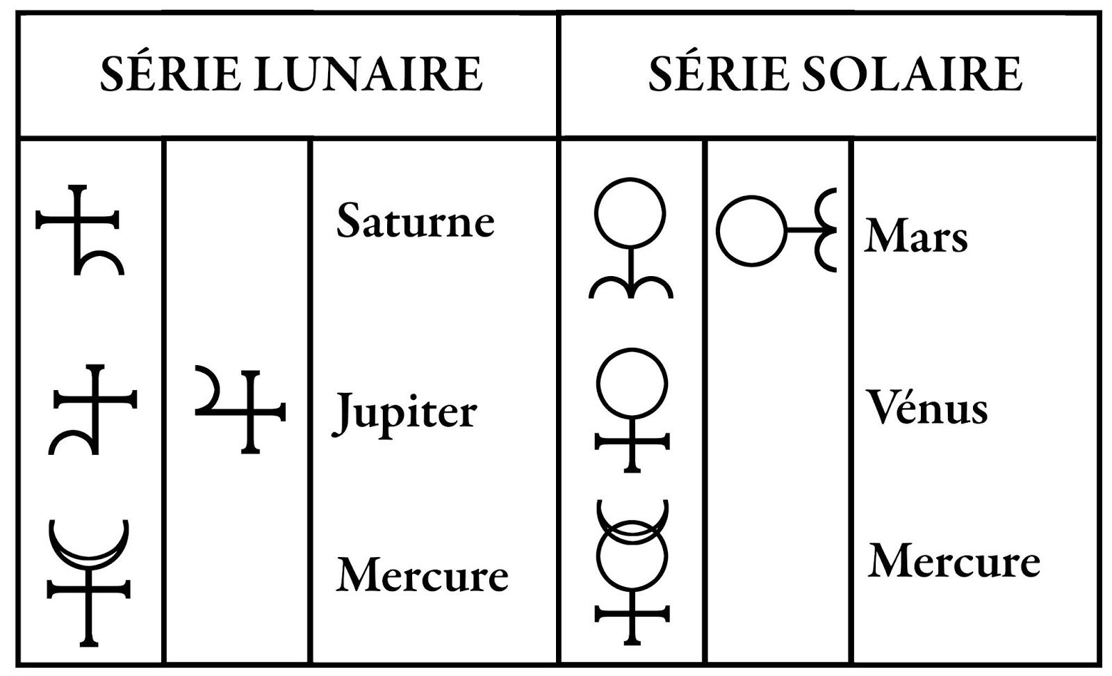 The very ancient Sapients and Magi transmitted to us five hieroglyphic signs of the Planets, all composed of the characters of the MOON and the sun, with the sign of the Elements or the hieroglyphic sign of Aries, as indicated by those that we see figured here: