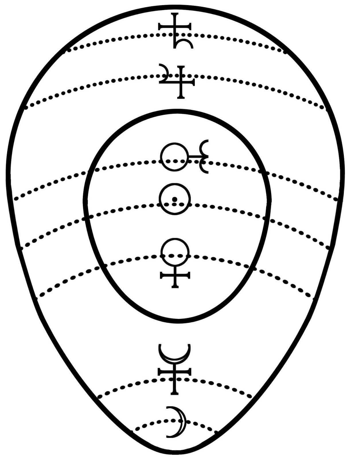 From our twelfth and thirteenth theorems it may be inferred that celestial Astronomy is as it were the source and directress of the lower Astronomy. Having thus raised to heaven our Kabbalistic eyes (illuminated by the contemplation of the aforesaid mysteries), we perceive very exactly the Anatomy of our Monad thus showing itself to us always in the Light and the Life of Nature, and discovering very explicitly, by its own movement, the very secret mysteries of this physical Analysis. Finally when we contemplated the celestial and divine actions of this celestial messenger, we were led to apply to this coordination the figure of the Egg. For it is well known to all astronomers that, in the Æther, the circuit which it forms by its course is represented by an oval. And,