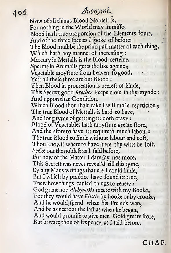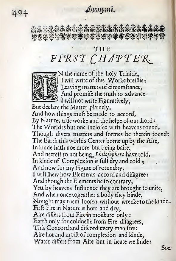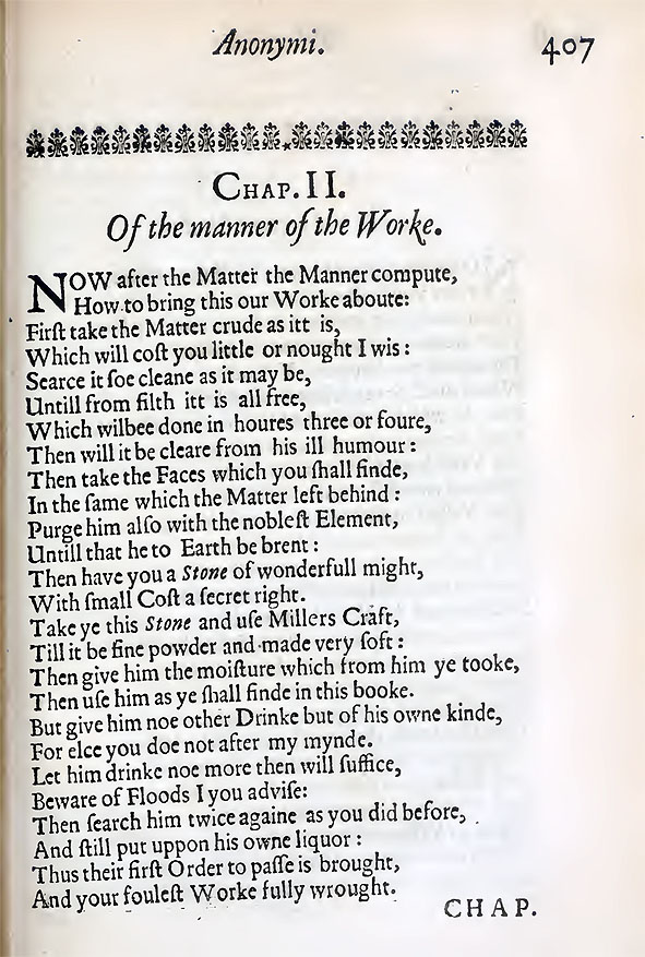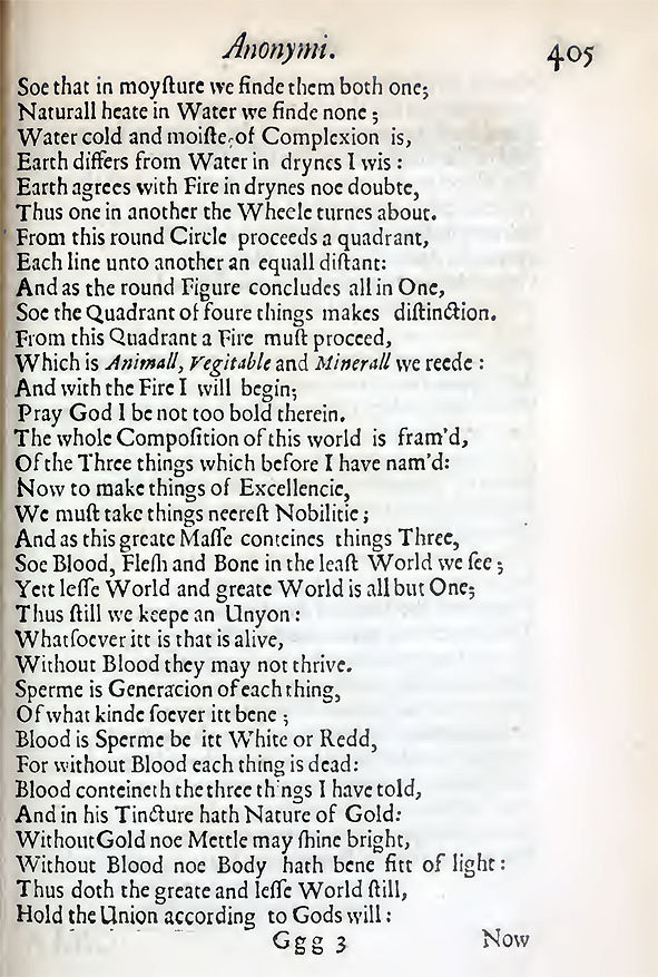 “So our Stone is borne, and come out of one confused mass, containing in it the foure Elements, which is created of God, and by his sole miracle our stone is borne.”