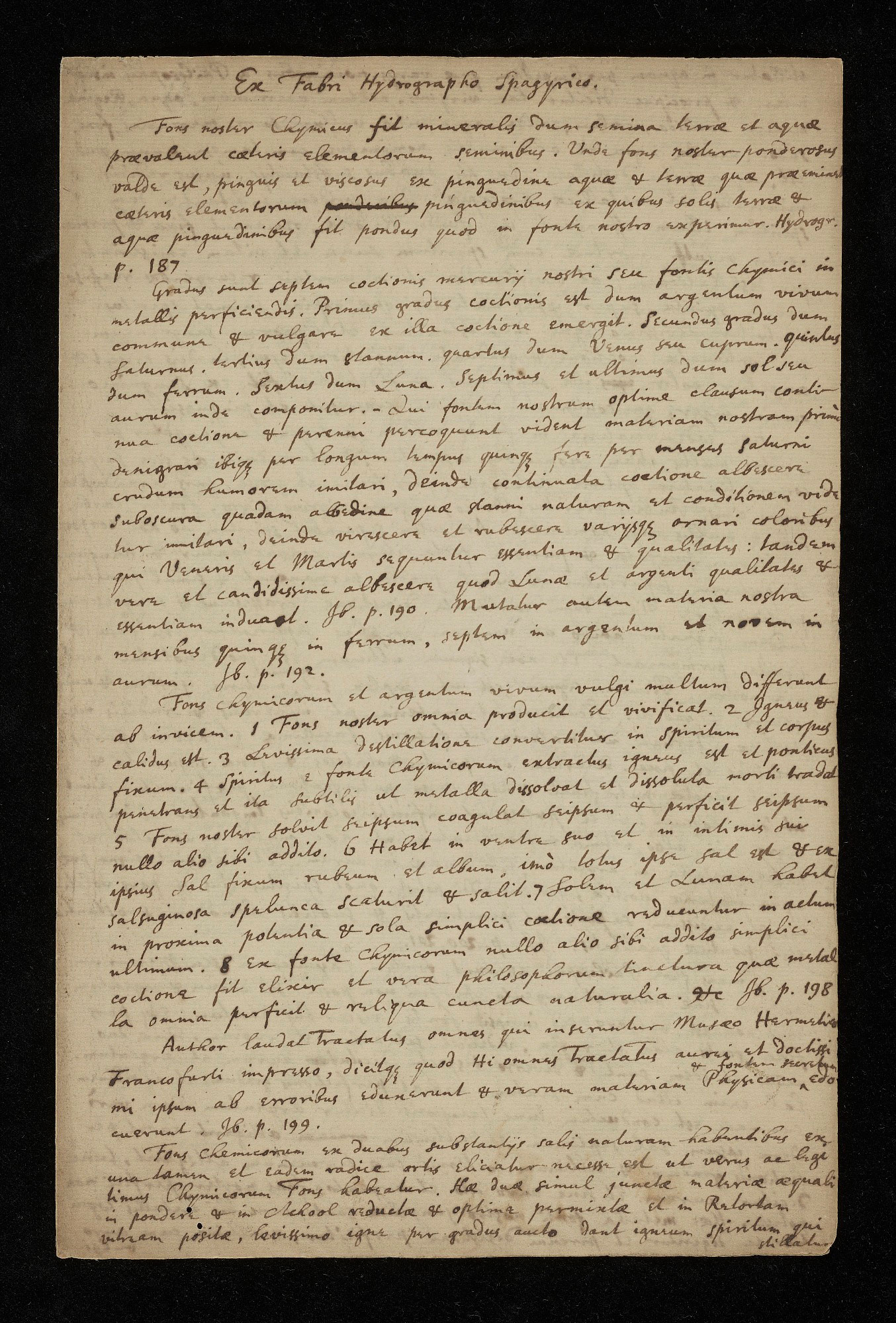 Isaac Newton Manuscript: Ex Fabri hydrographo spagyrico