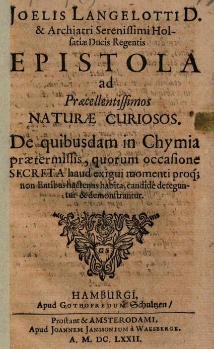Epistola ad Praecellentissimos Naturae Curiosos. De quibusdam in Chymia praetermissis, quorum occasione Secreta haud exigui momenti ... deteguntur & demonstrantur written by Joel Langelott