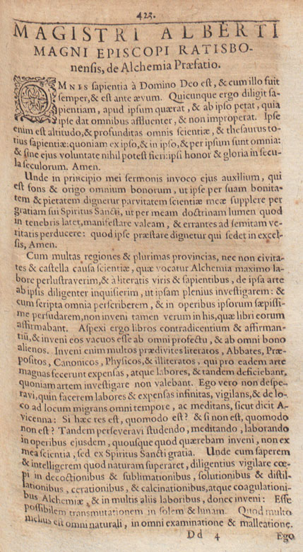 Magistri Alberti Magni Episcopi Ratisbonensis, de Alchemia Praefatio.
