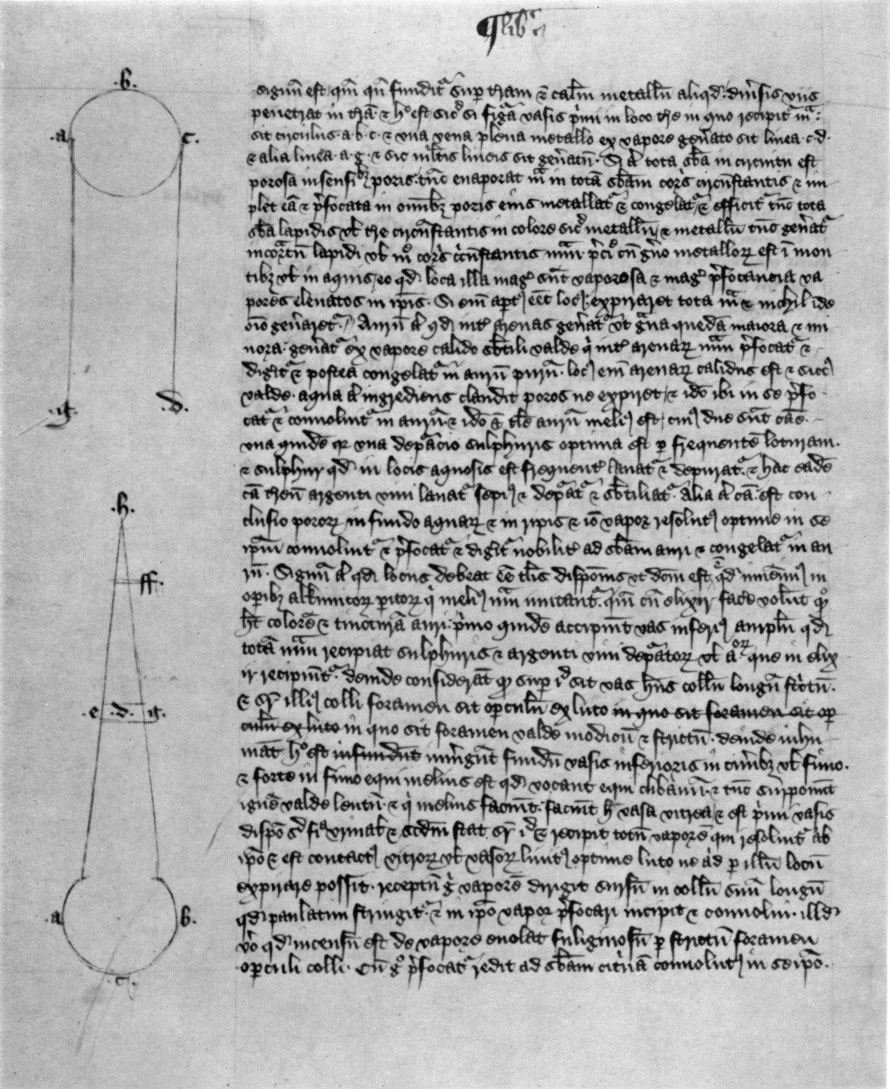 Moreover, we have shown in the second book [of Generation and Corruption] and in the Meteorology that anything that is hardened by cold has Water as its primary material. And there is no doubt that metals are hardened by the cold of Water; and therefore a moist humour will be the material of all of them. And for this reason Aristotle, foremost of the Peripatetics, says in the fifth book of the Metaphysics that the material of all liquefiable things is one that is, Water.