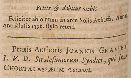 3. The Practice of the Author Johannes Grasseus, Doctor of Both Laws, Syndic of Strasbourg, which he called Chortalasseum.
