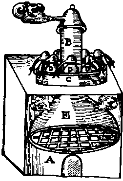 The second is of seething water and the vapor thereof, as also of ashes, and serves to distill those things which are subtle and moist, as also for the rectifying of any spirit or oil.