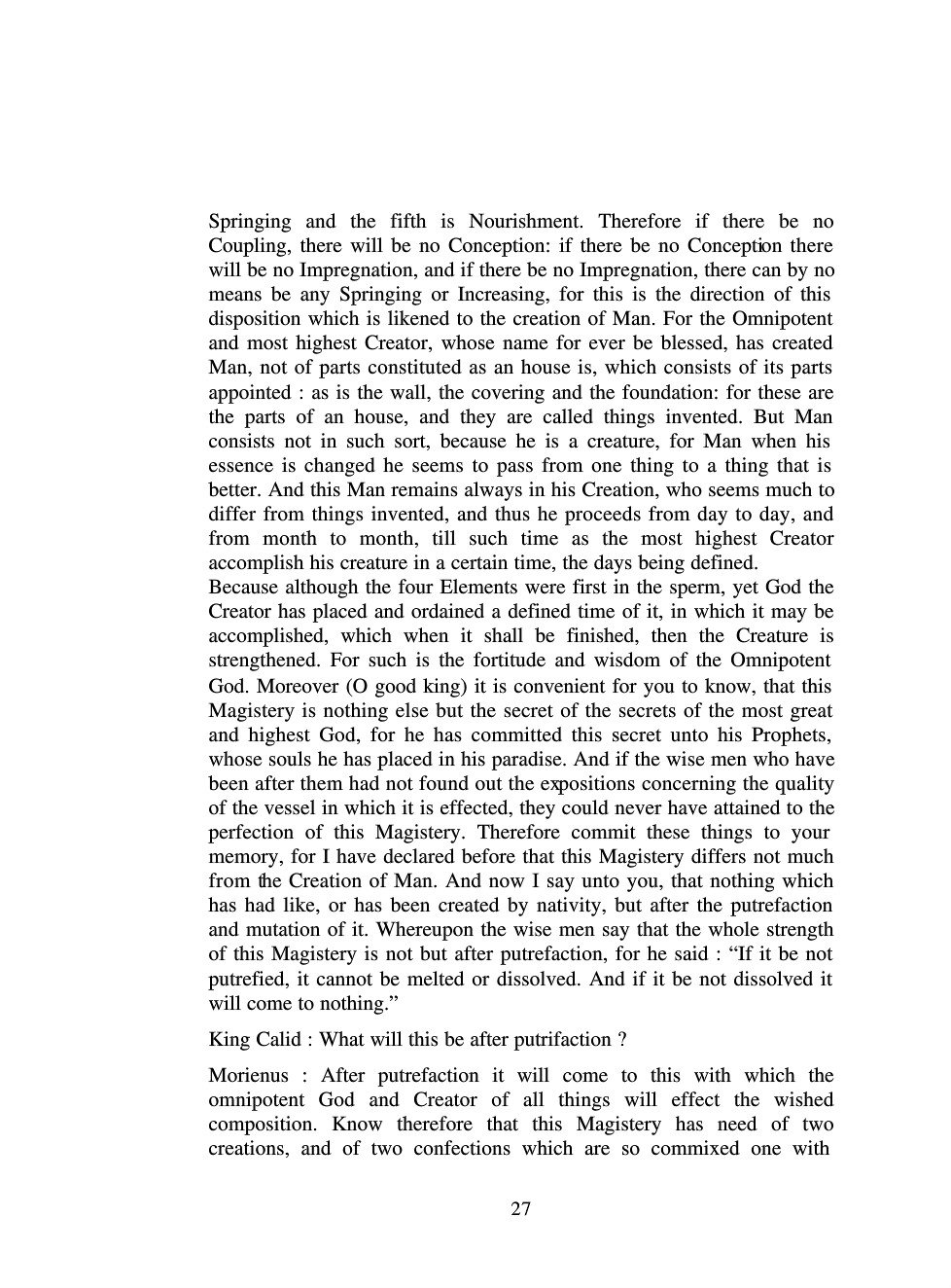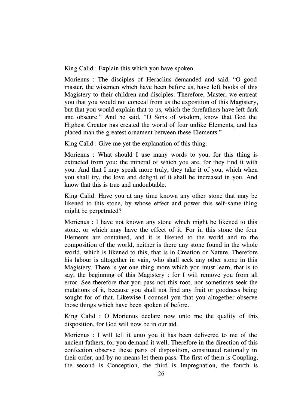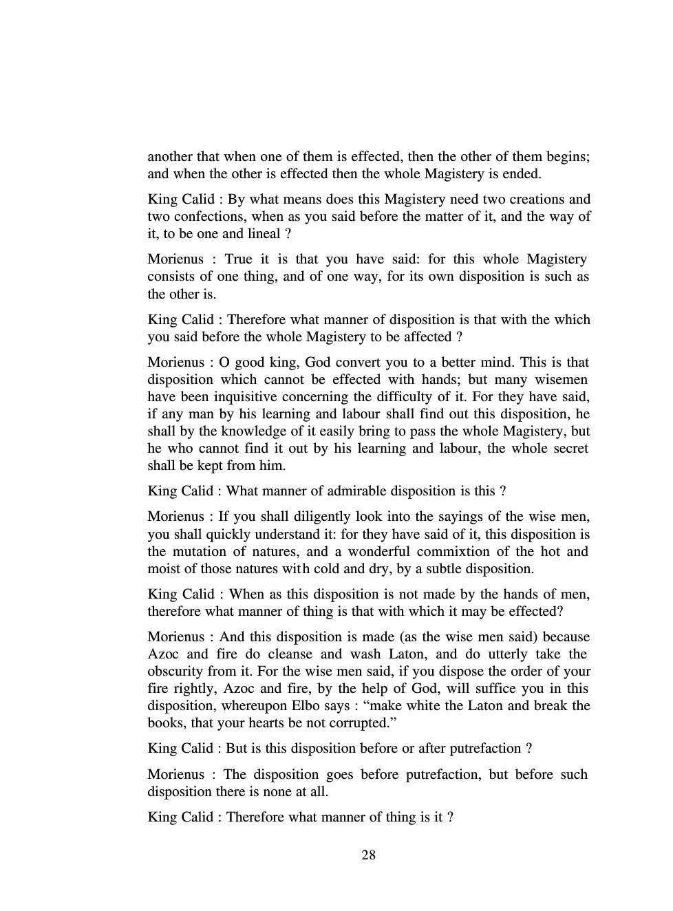 King Calid: The Creator be always in our aid, but declare unto me the second disposition, whether that be the end of the first disposition.