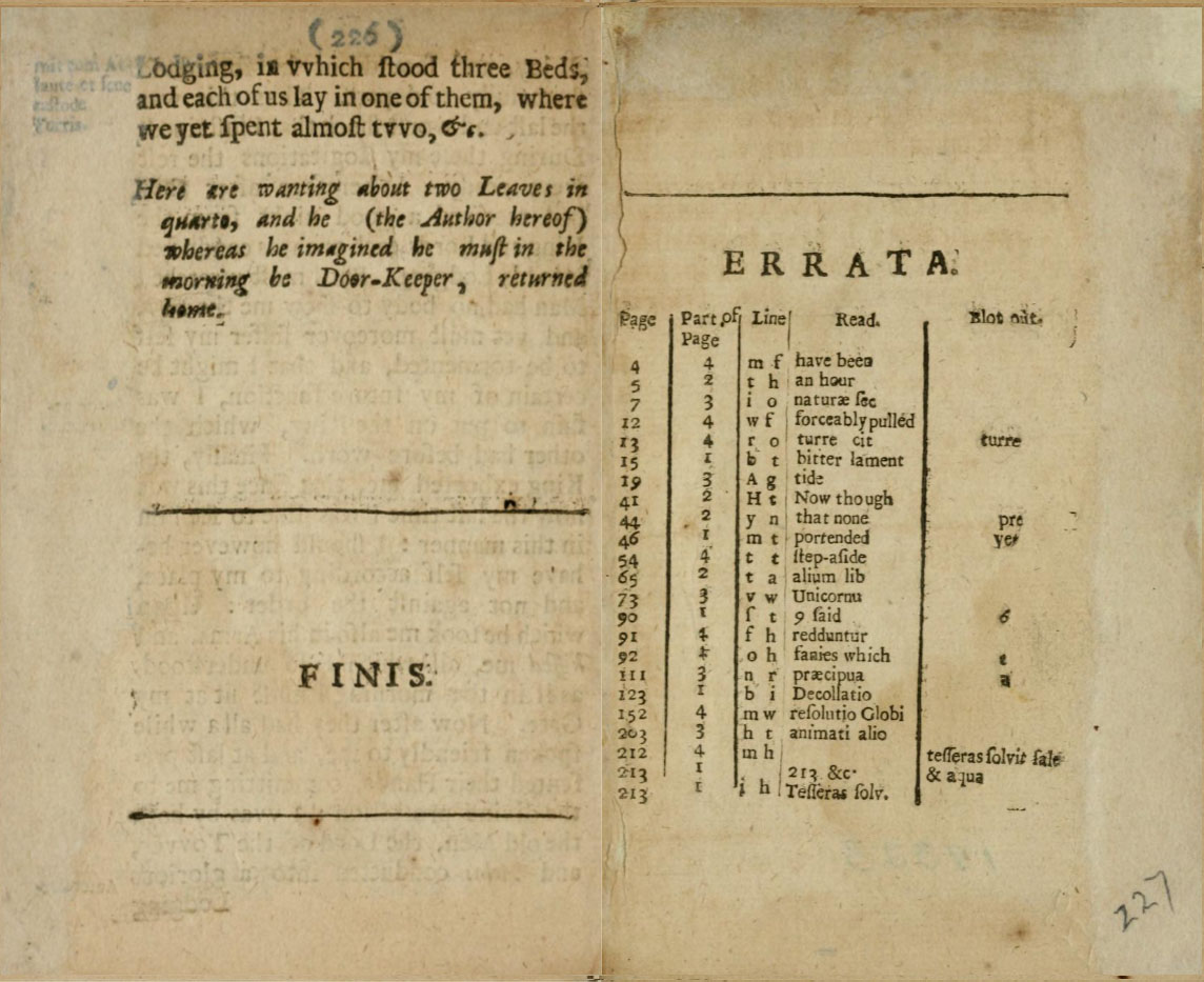 Here are wanting about two leaves in quarto, and he ( the author hereof ), whereas he imagined he must in the morning be door keeper, returned home.