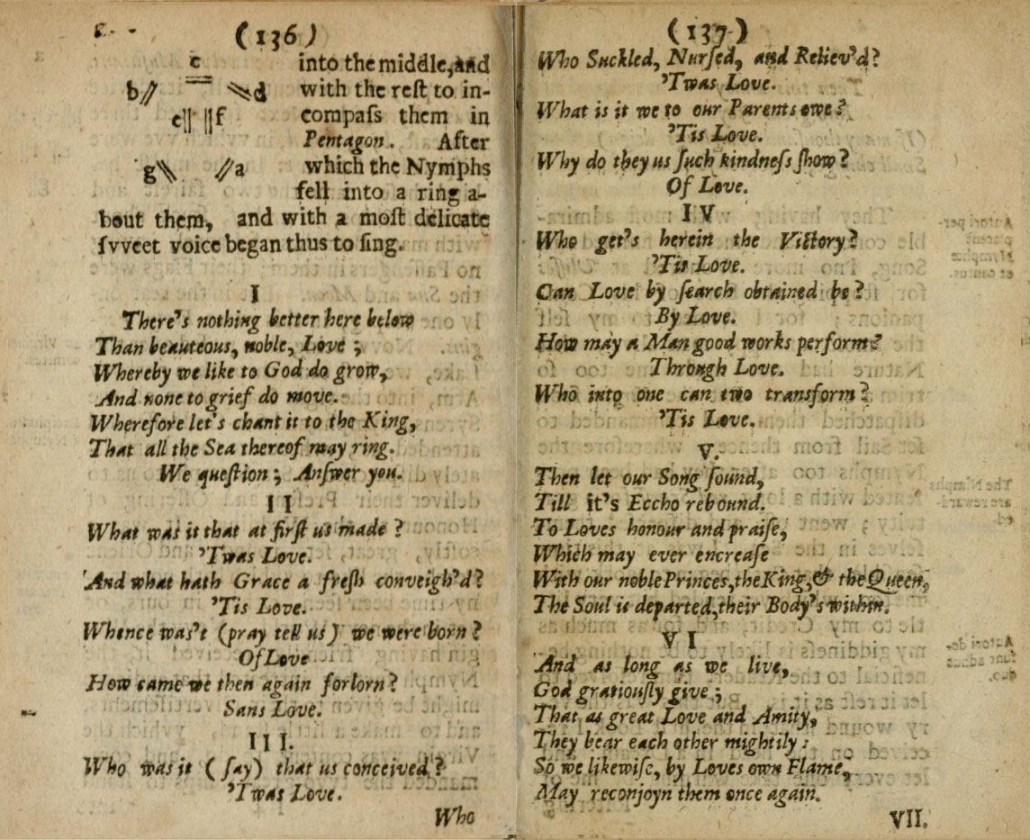 I was hardly got out of my cell into a forest when me thought the whole heaven and all the elements had already trimmed themselves against this wedding. For even the birds chanted more pleasantly then before, and the young fawns skipped so merrily, that they rejoiced my old heart, and moved me to sing: wherefore with a loud voice I thus began: