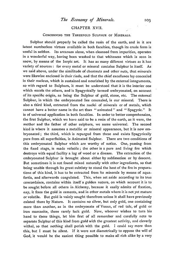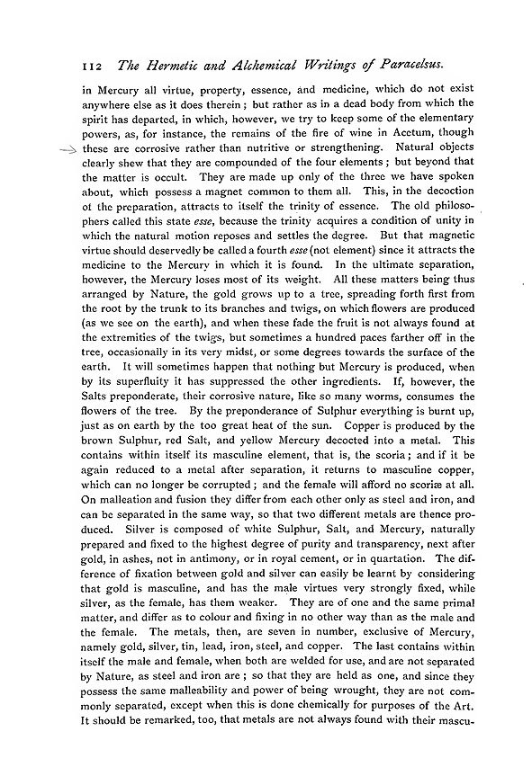 “Let me tell the gentle reader that the metals, that is to say, gold and silver in their metallic form, are not the Matter of our Stone—being in the middle between them and the base metals, as our Matter is in the middle between the former and our Great Stone.”