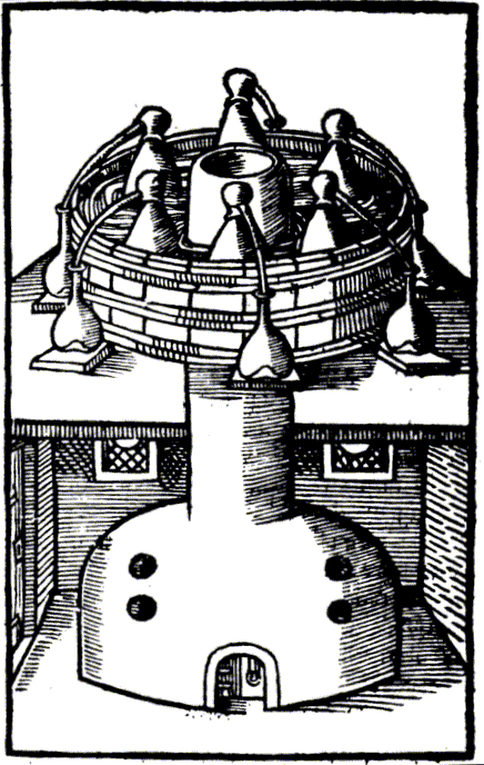 When all the spirits are assembled be put into the distillatory or circulatory of Hermes, of which is the figure below.