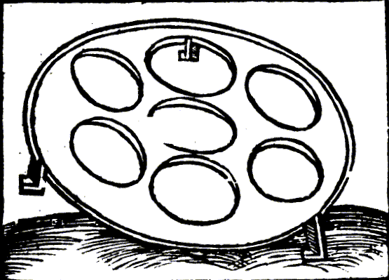 The others take two vessels, one of which will be container having the mouth wider than the other, to put one in the other, and after that, they must fight with good knowledge, from which follows the figure. The others are equal circulation vessels, so much so that from one end to the other, they are of the same size, but in the middle of them there is a beak as the figure appears here.