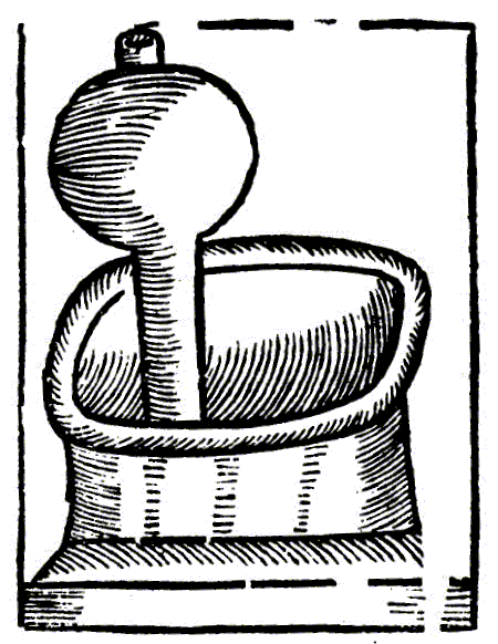 The others have a single vessel, wide above and below: but narrow in the middle, and with the spout proceeding from the lower part, and when the material is put into said vessel, either well enclosed with a lid of glass or silver, and is thus the shape of this vessel.