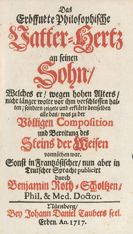 Formerly published in French, but now in the German language by Benjamin Roth-Scholken, Doctor of Philosophy and Medicine.