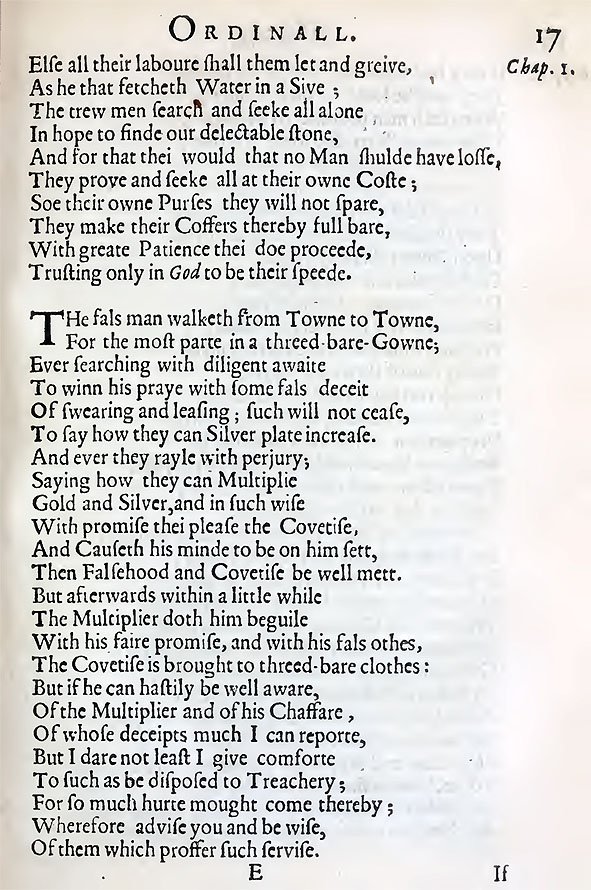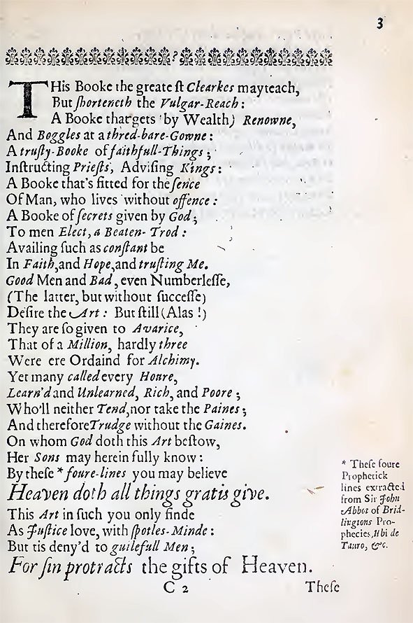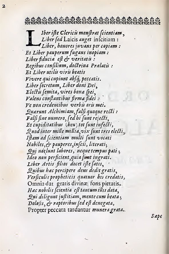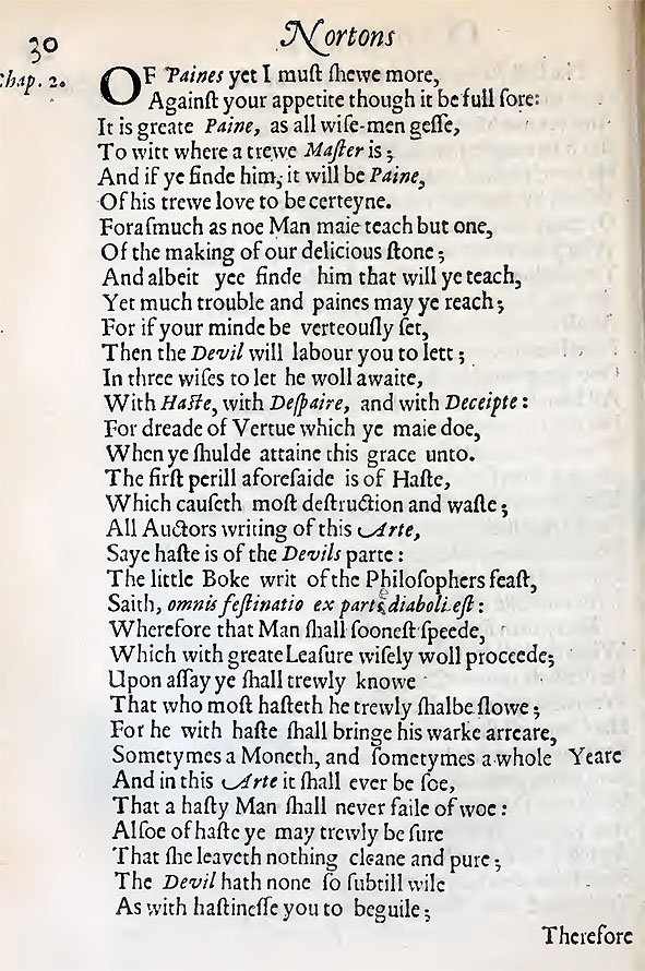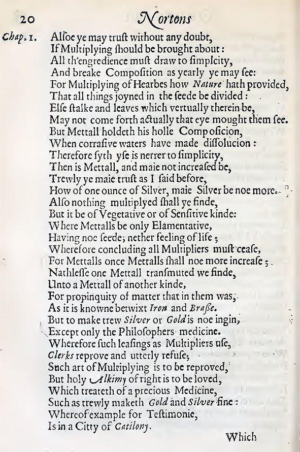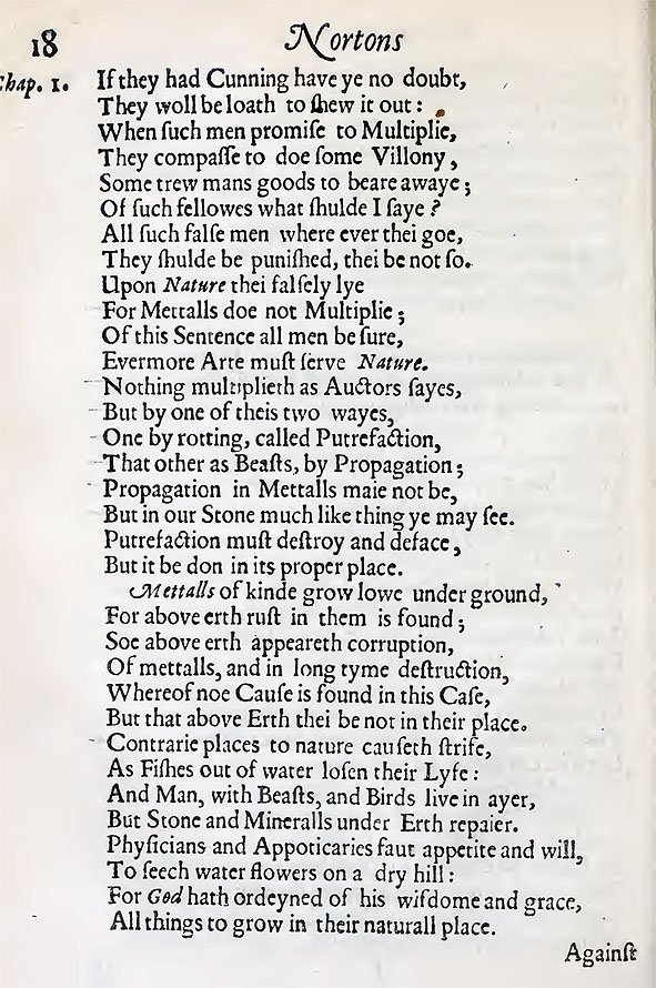 “Our water then is the most beautiful, lovely, and clear fountain, prepared only for the king, and queen whom it knows very well, and they it. For it attracts them to itself, and they abide therein for two or three days, to wit, two or three months, to wash themselves therewith, whereby they are made young again and beautiful. And because sol and luna have their original from this water their mother; it is necessary therefore that they enter into it again, to wit, into their mothers womb, that they may be regenerated and born again, and made more healthy, more noble and more strong. If therefore these do not die and be converted to water, they remain alone or as they were and without fruit; but if they die, and are resolved in our water, they bring forth fruit of a hundred fold; and from that very place in which they seem to perish, from thence shall they appear to be that which they were not before.”
