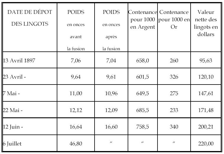 For my part, I like to consider it as such, but I am careful not to want to force you or anyone else to share my opinion. All that mattered to the members of the Argentaurum Syndicate was whether the United States Mint would buy at the price of gold, whatever their metal might be. However, they have nothing more to be desired on this subject, since the Mint has already bought three bars from them. We are preparing the fourth (*).