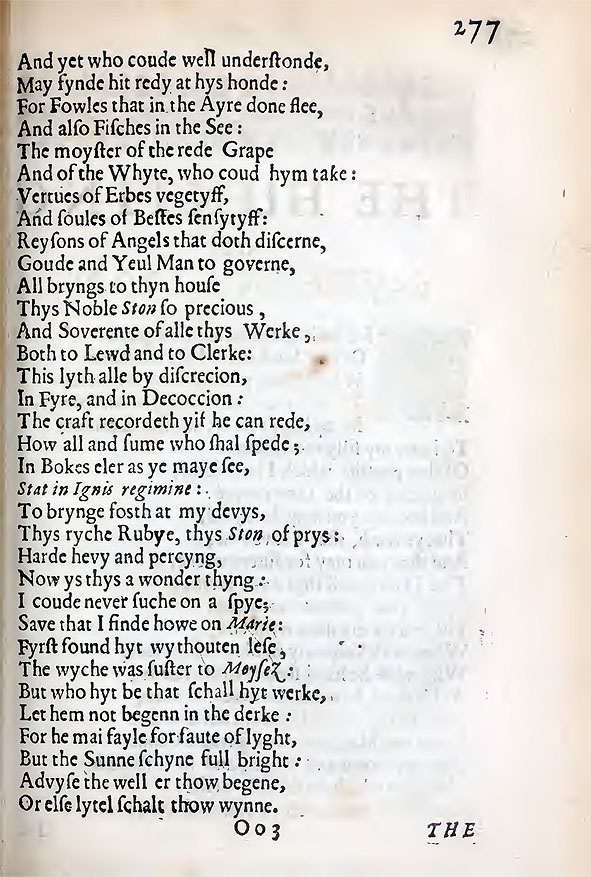 “patiently continuing decoction until such time the tincture be come out in black colour upon the water, and when thou seest the blackness appear in the said water, know thou all the body to be liquefieth, and then it behoveth to continue an easy fire upon it, until such time it hath conceived the dark cloud which it hath brought forth. The intent of the philosophers is that now the body dissolveth into black powder, may enter into this water and all may be made one. For then the water taketh the whiter as his own nature. Therefore without all be turned into water, thou shalt never come by any means to perfect perfection.”