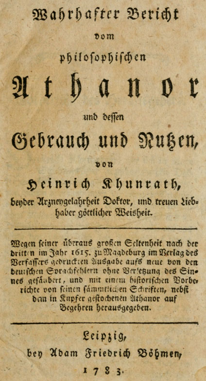 Wahrhafter Bericht vom philosophischen Athanor, und dessen Gebrauch und Nutzen / von Heinrich Khunrath