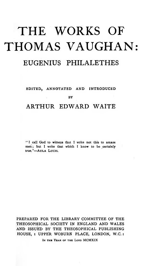 By Thomas Vaughan Also Known As Eugenius Philalethes